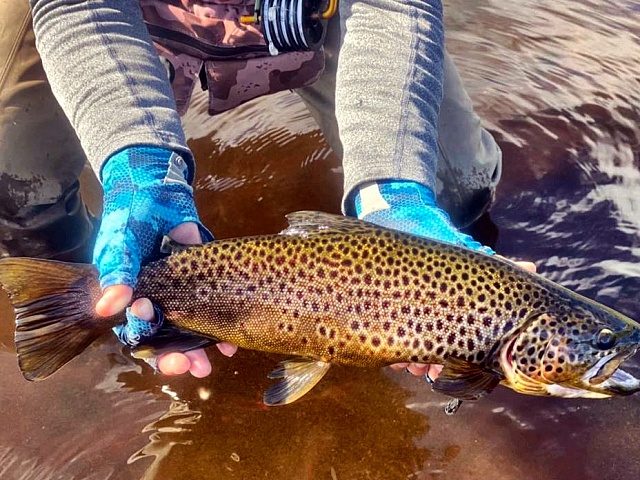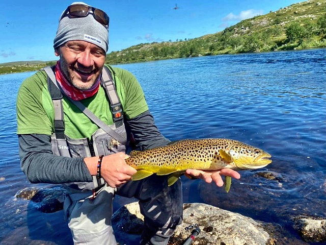 This week the weather was sunny, without rains. Water level was going down little by little, though it was not yet summer level. The guests fished both on streamers and big dry flies. There was a hatch of dayfly and stone fly this week. Trout has already spread all over the river. There were no record samples, although there were trout over 60cm in catchings. Salmon has already reached Peninsula (“Birches”). As a result 210 trout and 1 salmon were caught this week.