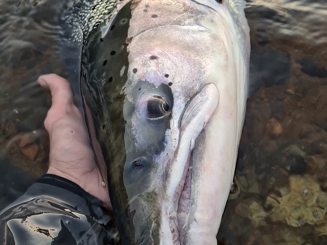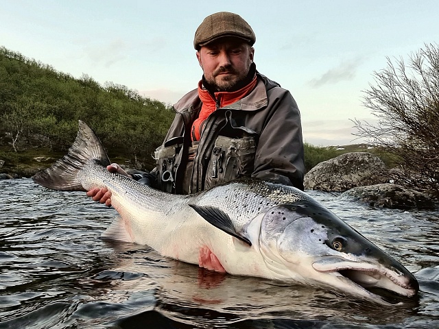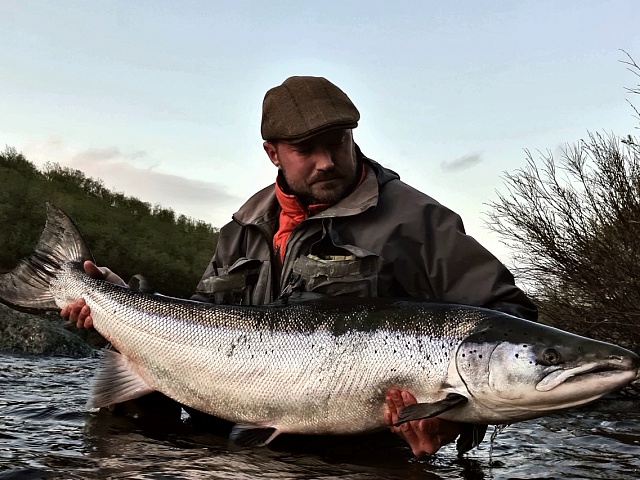 Today another trophy salmon of this season was landed on Hourglass. 117cm male salmon turned the scale to 17,6kg. It was the same fly - Snaelda Willie Gun. Alex didn’t change it, cause no one wants to make a trade with him any more :-)