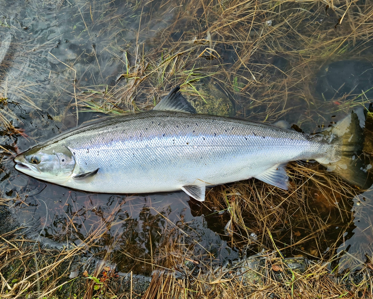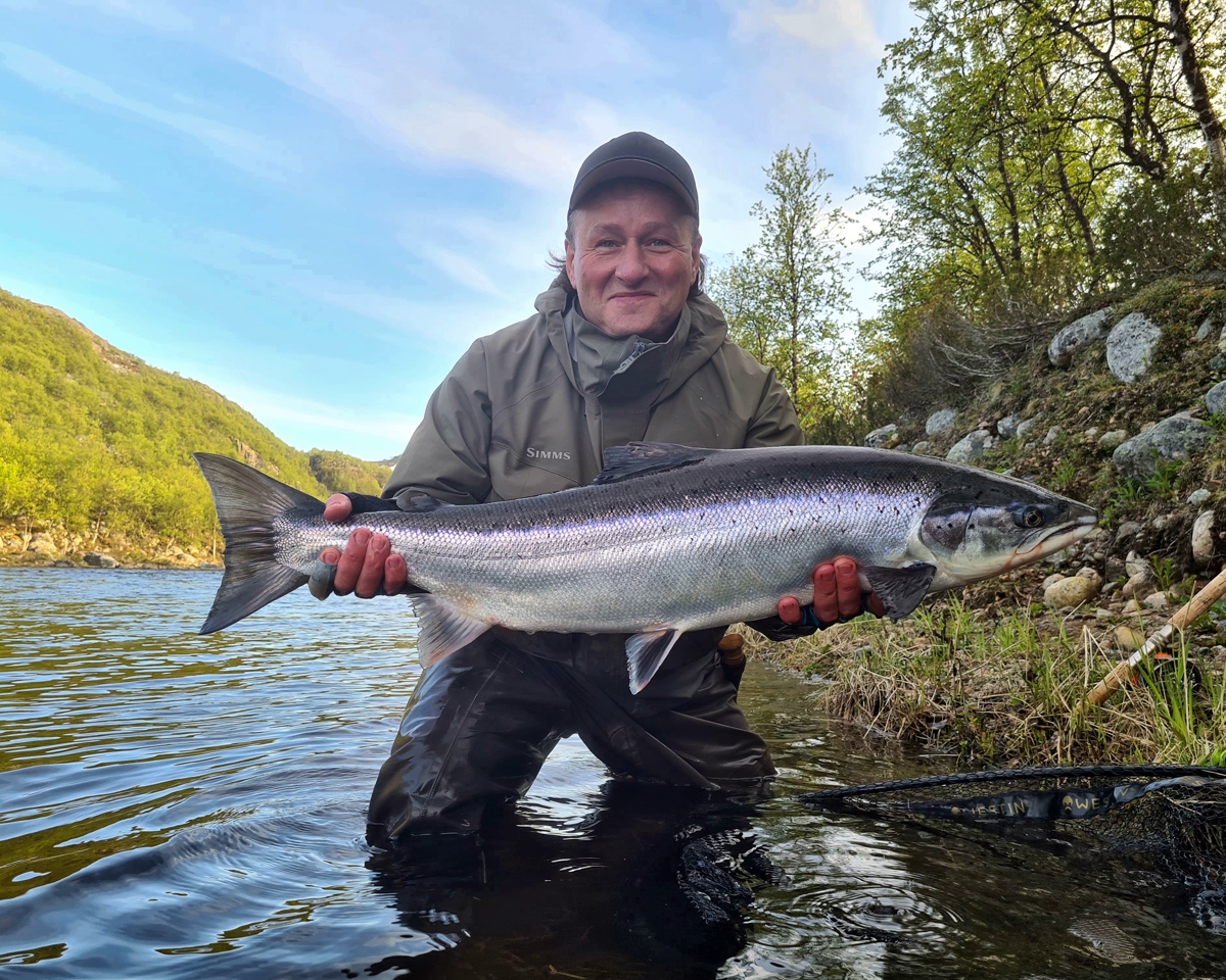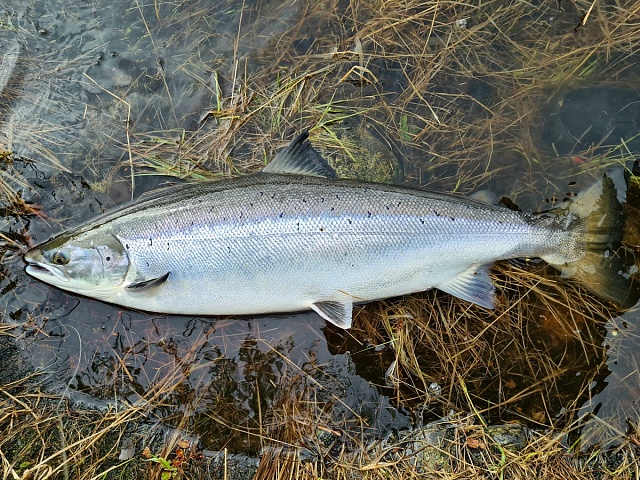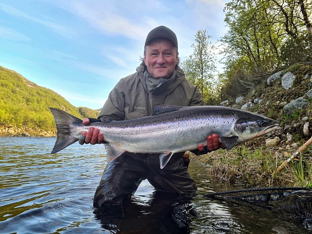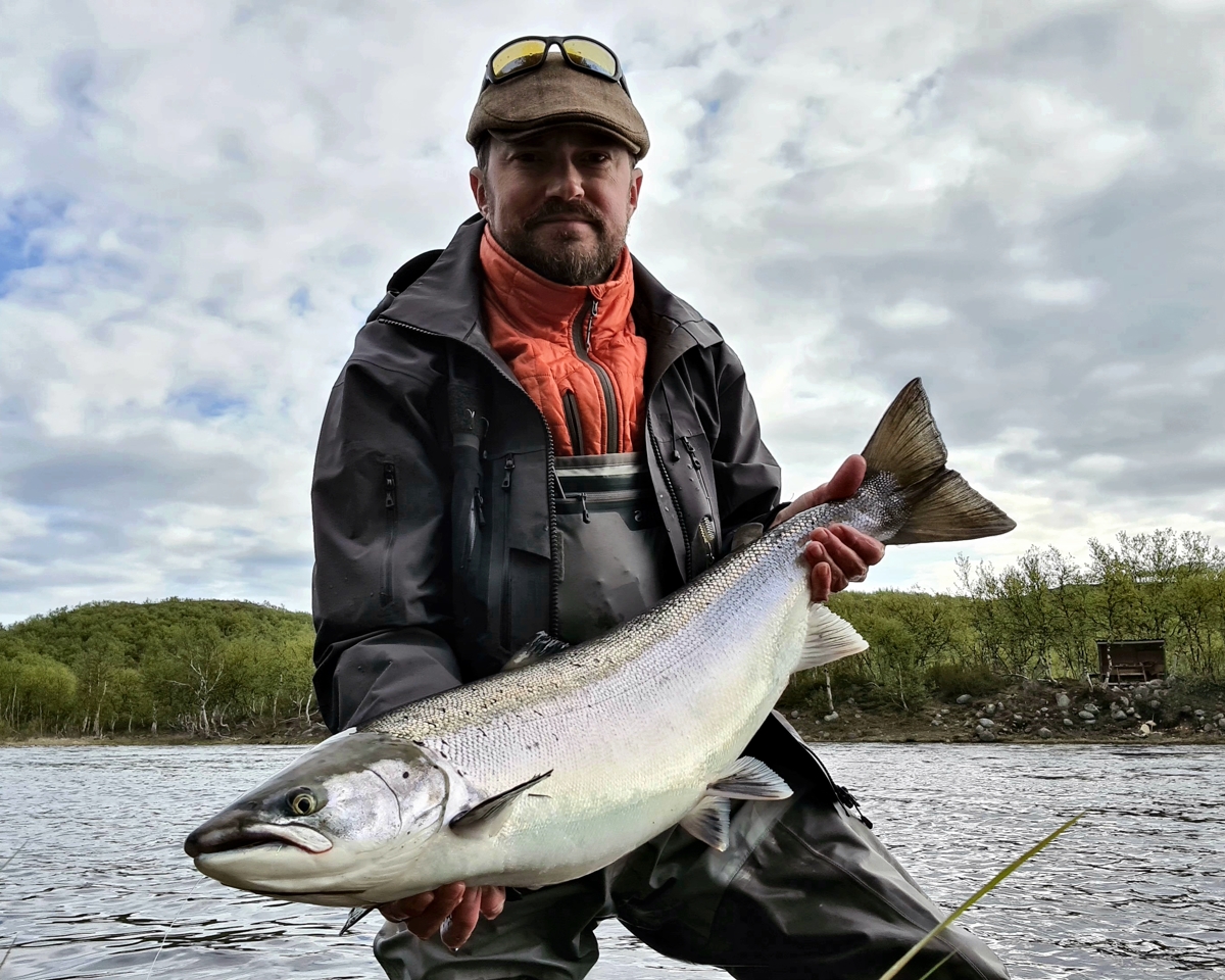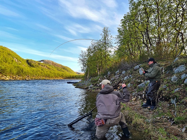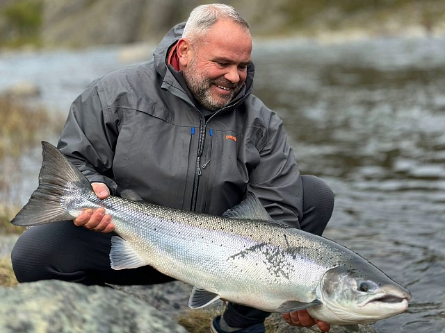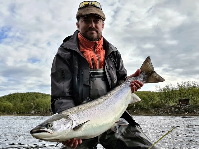 Nevertheless, there are advantages. The level in the river is kept at the same level, and it is very comfortable for fishing. You can already fish even with a floating line on Finnpool. The fish comes to the surface following the fly. Fresh fish has not yet been found above this pool, but it is present on it and below, and not a single one. Among decent samples, another meter long Atlantic salmon was caught on Varzina and 103cm fish on