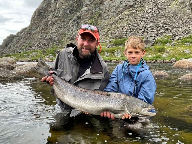 Fifth week at Sidorovka Paradise Camp came to its end. This week we met a family from St. Petersburg. Head of the family is our frequent guest, however, his wife and son are newcomers and they are at the same time beginners in fly fishing. With the help of experienced guides they sorted out the situation on the river rather quickly and already on the first day of fishing showed great results. Weather on the northern coast of Kola peninsula was rather warm. Average air temperature was +25C, water warmed up to +18C, water level became below the average. Pink salmon entered the river. The biggest fish of the week was male salmon of 102cm in length, landed on Lake pool. All in all 24 nice salmon were got into landing nets this week. Looking forward to meeting new group of guests and hope that they will be more lucky.
