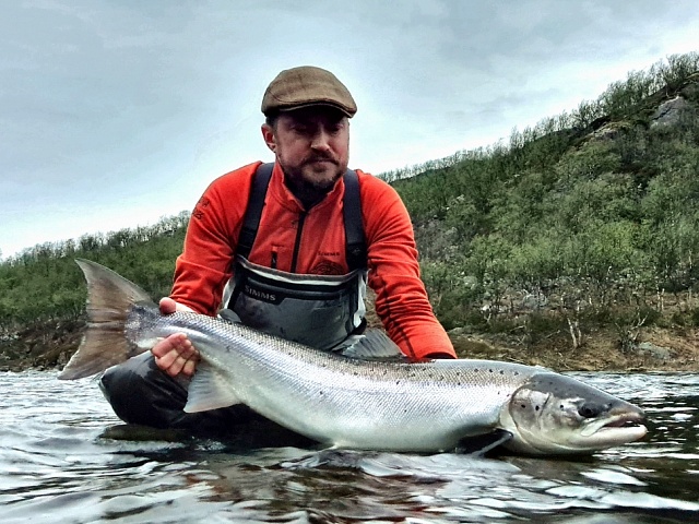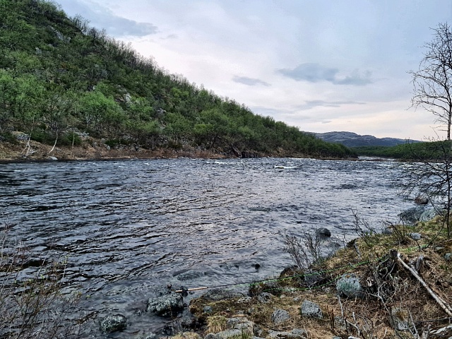 "Premonitions did not deceive him"))) The first fresh fish of the season was traditionally landed on Pakhta, 94cm. The water temperature in Varzina under the stream is already +8.3C. It rose by almost one and a half degrees during the day. The level is also growing, but so far is comfortable for fishing. The mosquitos fly and are not yet aggressive, but the midge came out. You can’t call the season ordinary. Thick fleece is not needed yet.